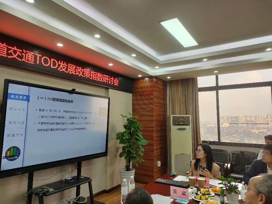 “TOD发展政策指数”研讨会上,执行经理何德文副教授介绍了“TOD发展政策指数”研究的理论与实践。随后,研究团队成员李东坤博士从研究背景、框架体系、指标内容、数据方法四个方面对“中国城市轨道交通TOD发展政策指数”成果进行展示报告。
