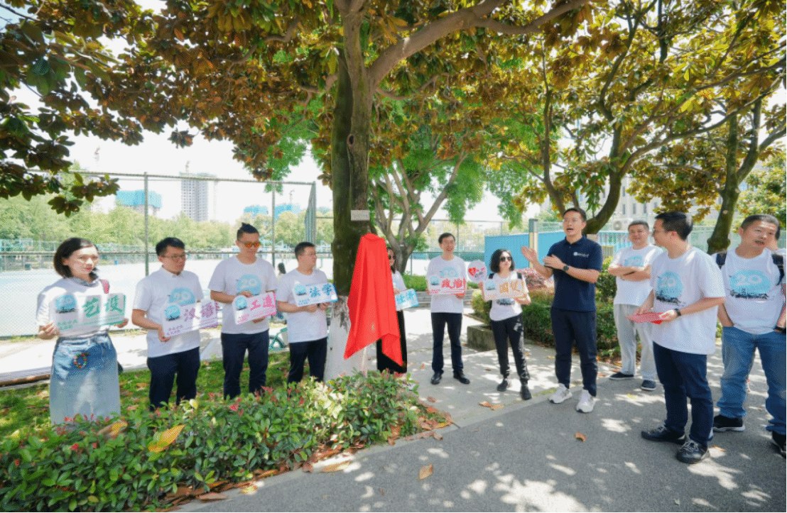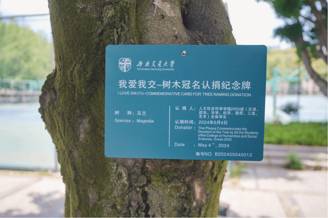 5月4日下午14:00,各位员工参加2000级树木冠名认捐仪式,学校合作发展处阮波副处长出席认捐仪式。员工们冠一方铭牌于碧树,留下的翠绿将代替员工们见证交大的蓬勃发展。