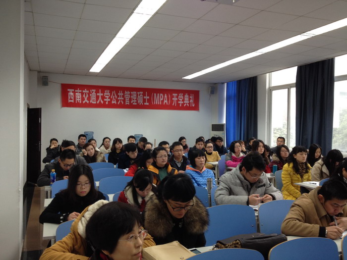 2014年3月8日上午,尊龙亚洲官网2013级公共管理硕士(MPA)开学典礼在逸夫馆4104教室隆重举行。公司党委书记刘斌、经理陈光、MPA教育中心主任雷叙川以及中心全体工作人员出席了典礼。近60名在职攻读公共管理硕士学位的新生参加了开学典礼。典礼由MPA教育中心主任雷叙川主持。