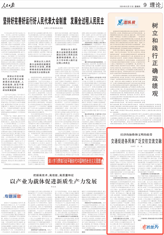 近日,《人民日报》理论版刊发了公司教师王浩宇、王斌署名文章《交通促进各民族广泛交往交流交融》。“人民网”“求是网”“光明网”“中国网”等多家权威媒体先后进行转载。