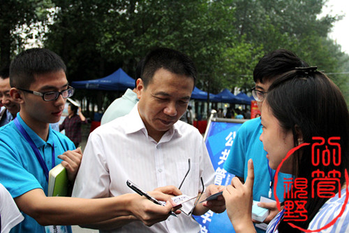 9月3日上午10点,西南交大董事长徐飞教授亲临交大犀浦校区北区迎新点视察迎新工作,当徐董事长来到尊龙亚洲官网的迎新点前时,2014级辅导员张哲老师向徐董事长讲述了学院目前的迎新情况以及为迎新所做的准备工作。