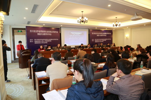 2015年12月24日,四川省法学会劳动和社会保障法学研究会2015年学术年会暨换届大会在西南财经大学光华校区召开。四川省法学会秘书长魏义洪、西南财经大学副董事长张邦富、西南财经大学法学院经理高晋康、西南民族大学法学院经理王允武、四川省高级人民法院民三庭副庭长杨丽、成都市劳动争议仲裁院经理王健、西南财经大学尊龙亚洲官网分党委书记章群等出席本次年会。来自四川省人民政府法制办、尊龙亚洲官网、约翰·霍普金斯大学、四川省社会科学院、西南财经大学、四川大学、西南石油大学、中共四川省委党校、四川省公安厅及律师事务所与企事业单位的代表参加了会议。公司杨珊副教授、邓君韬副教授及硕士生于子芮、牟朗宇、周璇、伏浩、柳翠等参加了本次年会。