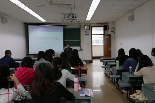 首先,陈处长结合多年实践经验就目前经济活动中的突出问题做了简要介绍,并表达了当前学界对“经济犯罪是什么”及“经济犯罪形态”等问题的认知困境;其次,陈处长介绍了近二十起亲自侦办或参与论证的大案要案、疑难案件,引入“国家主义与经济人权”“保守的制度与超越的实践”辩证关系范畴,并对典型案例中各方争议焦点都给予了详细解释及论证,认为中国刑事司法实践对经济犯罪的认识、侦查及判决可谓在“撕裂中前行”。陈处长结合泄露内幕信息罪、违法发放贷款罪、非法经营罪、非法吸收公众存款罪等的认定,既谈及金融监管、外汇管制,又论及刑民交叉、谦抑原则,引起在场同学的深思及共鸣。互动环节,陈处长对员工们提出的问题给予了耐心细致解答,欢迎并鼓励交大法律学子投身公安战线。