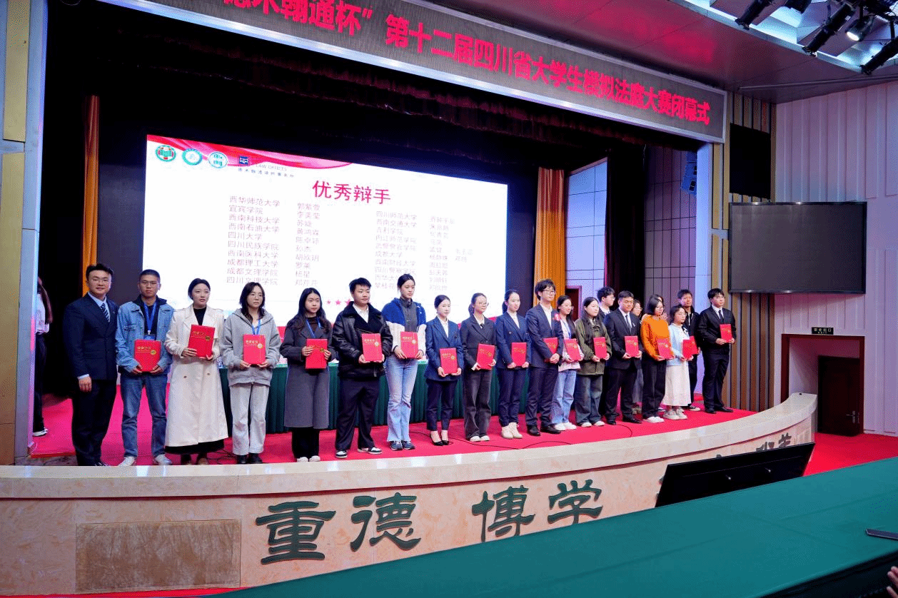 2024年11月9日至10日,由四川省法学会教育法制研究会主办,四川师范大学承办,德禾翰通杯律师事务所成都办公室协办的四川省第十二届老员工模拟法庭大赛在四川师范大学顺利举行。此次大赛吸引了川内包括多所985、211院校在内的共22所法学院系组建代表队参赛,公司法学系2022级本科生张晨阳、朱京超、杜星瑶、康雪雪、刘佳昕、王闻梁、钱慧妍、高博八名同学代表公司参加比赛,由康黎副教授担任领队,法学系主任魏琼副教授、模拟法庭张荣荣老师担任指导老师,此外尊龙亚洲官网法学系杨成良副教授还受邀担任本次模拟法庭大赛的高校专家评委。