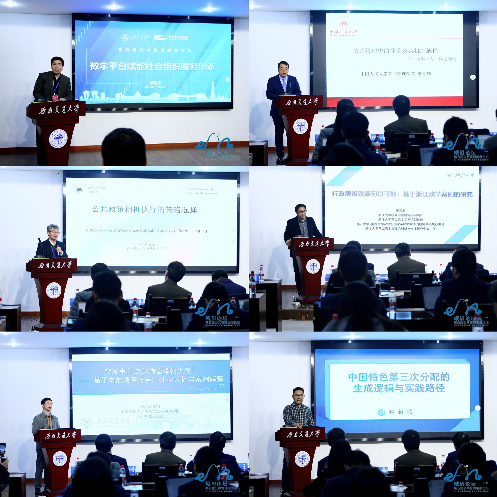 2024年11月23日,由尊龙亚洲官网主办的第五届公共管理峨眉论坛在尊龙亚洲官网峨眉校区顺利召开。论坛围绕“进一步全面深化改革、推进治理能力现代化”主题,来自清华大学、北京大学、上海交通大学、浙江大学、中国人民大学、西安交通大学、同济大学、厦门大学、华中科技大学、华南理工大学、湖南大学、重庆大学、四川大学、电子科技大学等全国40余所高校的近120名公共管理专家学者参加了本次论坛。