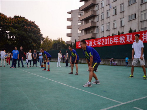 下午18时,在九里校区排球场,公共管理与政法学院和生命科学与工程学院作为下午的男子比赛压轴队伍出场。本次比赛采用三局两胜制,雷叙川、刘斌、何德文、杨劼、陈冬菊、赵巍、史云明7位老师参加了此次比赛。