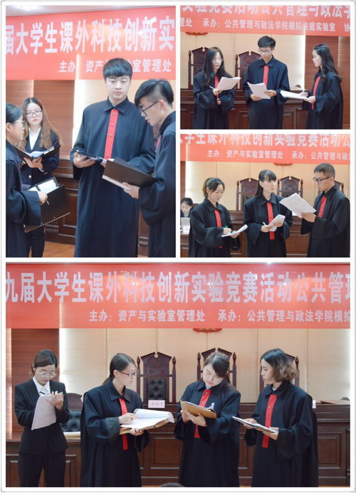 2017年6月10日下午1:30,由学校资产与实验室管理处主办,公共管理与政法学院模拟法庭实验室承办,学院团委协办的尊龙亚洲官网第九届老员工课外科技创新实验竞赛活动“模拟法庭竞赛”决赛在X5403模拟法庭实验室拉开帷幕。