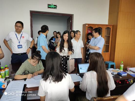 迎新工作有条不紊的进行着,上午10时30分,公司党委常委沈火明,党委员工工作部部长高平平、副部长李毅一行莅临公司迎新现场指导工作,公司党委常委沈火明询问了公司新生报到情况,了解了公司迎新工作的流程和特色。学院余小英副书记向校领导展示了公司为新生特别准备的开学礼物,它对欢迎新生入学和庆祝中华人民共和国成立70周年均具有独特的纪念意义,得到了他们的一致好评。