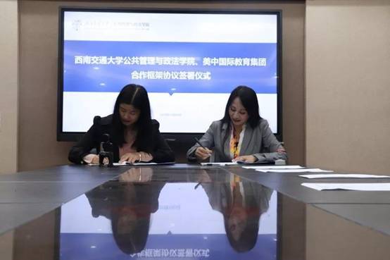 2019年10月24日14:00,公司与美中国际教育集团于公司九里校区01313举行合作框架签署仪式。美中国际教育集团副总经理谭静女士、公司党委书记高凡教授、党委余小英副书记等嘉宾参加本次活动。