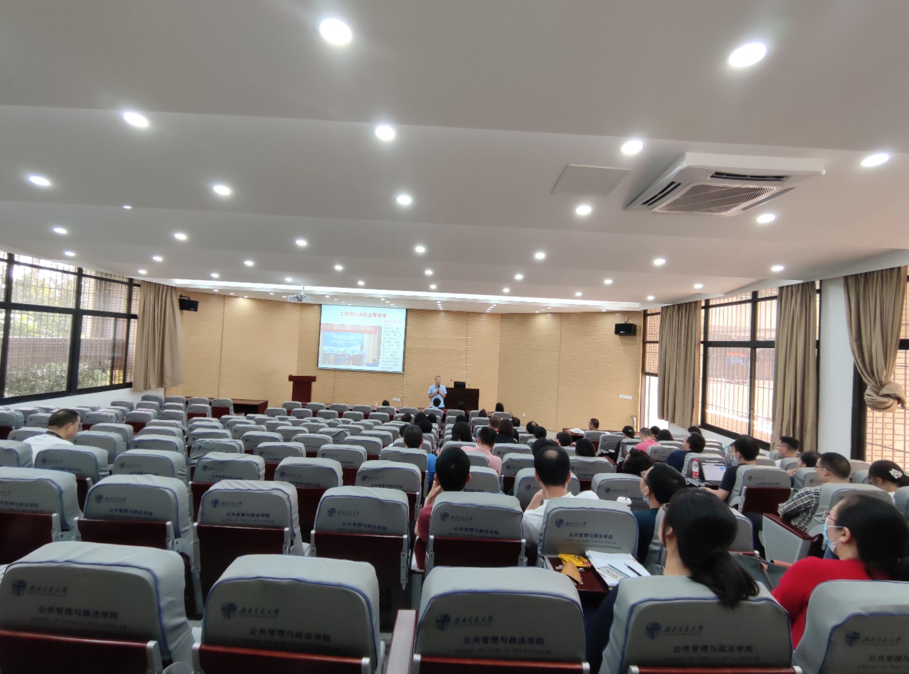 会议第二项,雷斌副经理首先介绍了公司在有组织科研上取得重大成果。本年度学院共立项国家社科基金项目6项,在教育部第八届高校科研优秀成果奖(人文社科类)中获得公司历史上第一个二等奖。随后,雷经理就四川省干部教育培训高校基地开展培训情况进行了简要介绍,他表示,虽然在疫情对培训工作造成了一定影响,但是干部培训工作也在通过多种方式进行,取得了一定成效。