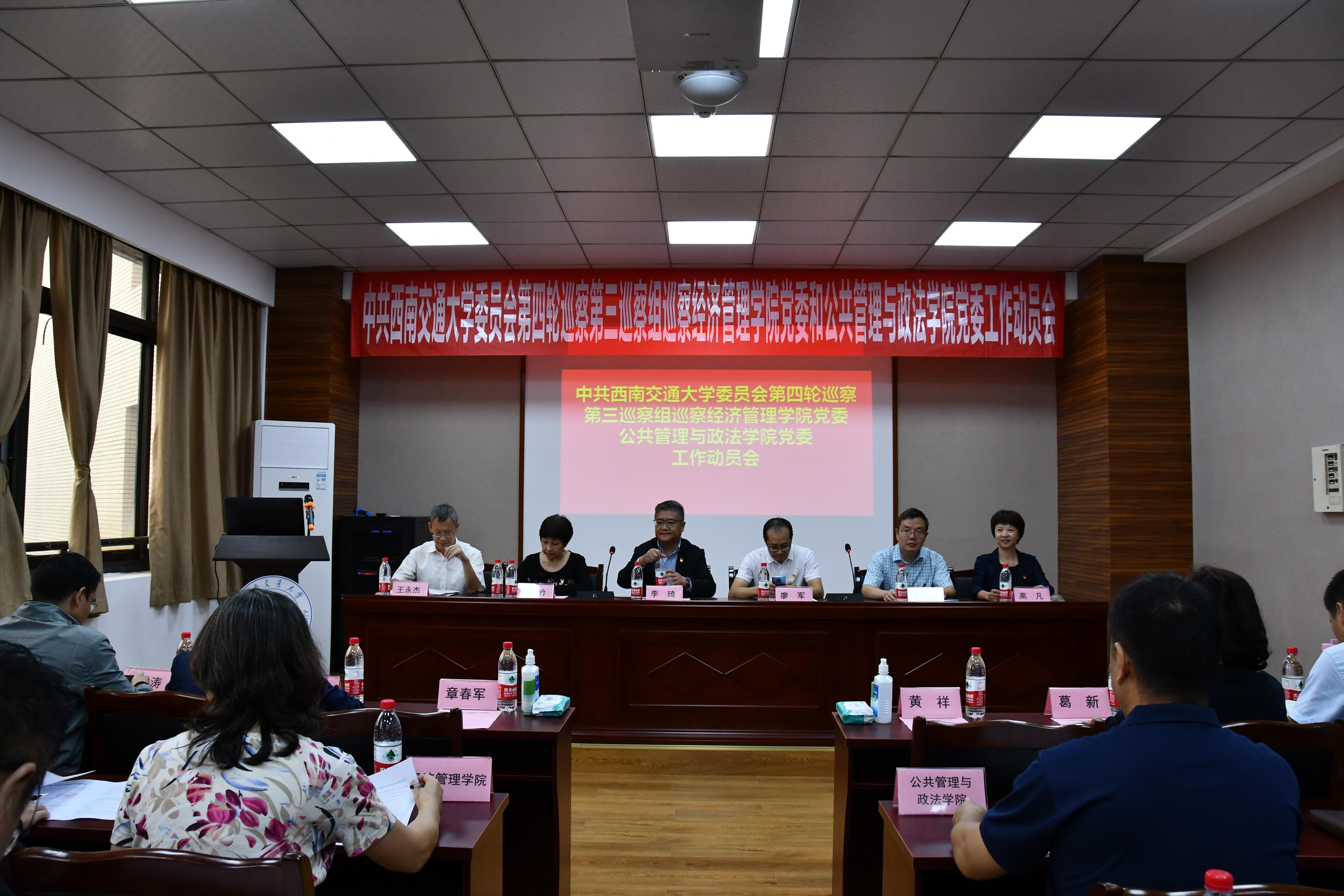 2020年9月24日,中共尊龙亚洲官网委员会第四轮巡察第三巡察组巡察经济管理公司党委、公共管理与政法公司党委工作动员会召开。第三巡察组组长廖军作动员讲话。校纪委副书记兼党委巡察工作办公室主任李琦受公司党委巡察工作领导小组委托提出工作要求。公共管理与政法公司党委书记高凡、经济管理公司党委副书记夏显波分别作表态发言。公共管理与政法学院经理王永杰主持会议。第三巡察组副组长沈竹及巡察组成员,经济管理学院、公共管理与政法公司党政领导班子全体成员、在校教职工、离退休人员代表和员工代表等出席动员会。