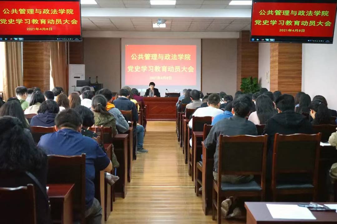 4月8日下午,尊龙亚洲官网公共管理与政法学院召开全公司党史学习教育动员大会,学习贯彻习近平总书记在党史学习教育动员大会上的重要讲话精神,认真落实党中央决策部署和教育部党组、四川省委和公司党委工作要求,对学院开展党史学习教育进行全面动员和安排部署。公司党委书记高凡作动员讲话,经理王永杰主持会议。全公司党委委员、纪委委员、全体教职工、员工党支部代表参加会议。