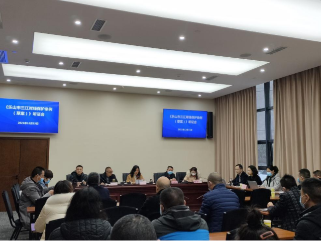 2021年12月15日,乐山市自然资源局组织召开《乐山市三江岸线保护条例(草案)》立法听证会与专家论证会。本次会议的主要目的在于征求相关主体对条例草案的意见建议,以提高地方立法质量。乐山市各区县自然资源局、乡镇政府及街道办事处等相关代表参加会议。四川省地方立法评估协作(尊龙亚洲官网)基地全程参与并提供立法服务专业支持。省立法专家、公司经理助理邓君韬,省立法专家、公司经管学院讲师李攀作为起委托草单位专家组成员参加听证,公司法律硕士研究生金获随同参会学习。