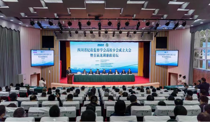 2022年11月12至13日,四川省纪检监察学会高校分会成立大会暨首届龙湖廉政论坛在四川师范大学狮子山校区隆重举行。此次会议系四川省纪检监察学会和四川师范大学联合主办,由四川省纪检监察学会高校分会、四川师范大学纪检监察学院承办。来自四川省政协、省纪委、省委教育工委、省教育厅等部门的相关领导以及省纪检监察学会、中国国际经济技术合作促进会、中国社会科学院、北京航空航天大学、上海社会科学院、廉政瞭望杂志社及省内56所高校的专家学者共160余人参加会议。
