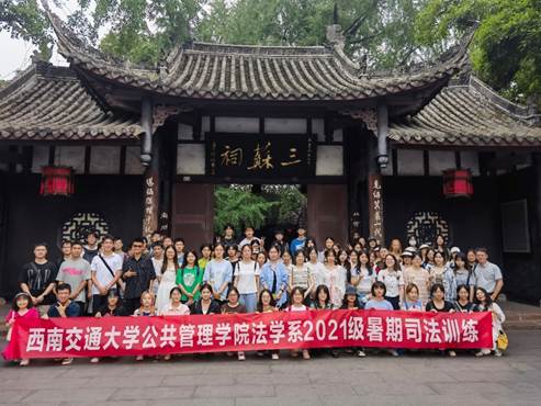 为深入学习贯彻党的二十大精神,扎实开展好学习贯彻习近平新时代中国特色社会主义思想主题教育,同时进一步增强法学专业员工的实践能力和综合素养,提升同学们理论与实践相结合的能力,深入了解法院的组织构成和运行模式,7月2日至3日,2021级法学专业全体同学在法学系杨道现老师带领下赴眉山市三苏祠以及彭山区、东坡区人民法院开展司法训练。