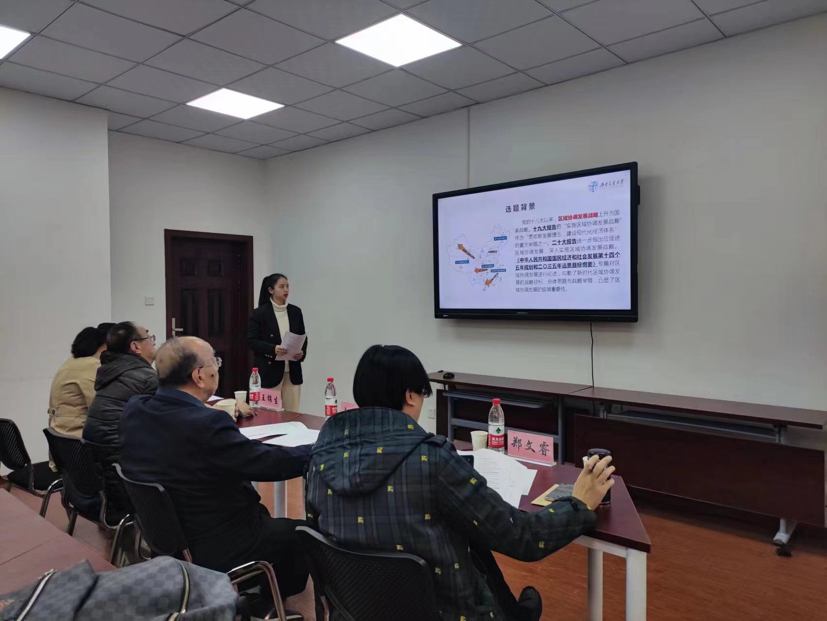 在主持人介绍与会专家和师生后,邓君韬副教授简要介绍了选题背景;随后,法律硕士研究生胡尚汶就《三星堆-金沙遗址保护协同立法研究》、李文凤就《大遗址保护补偿机制研究》、法学硕士骆阳就《大遗址保护规划在地方性法规中的表达及规制》分别作开题汇报,答辩委员会逐一质询、提问并就研究对象、逻辑结构、论文大纲等内容予以指导。
