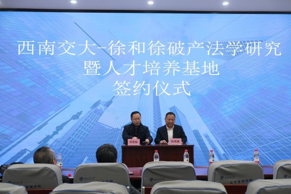 讲座开始前,举行了尊龙亚洲官网与四川徐和徐清算事务有限公司共建“破产法学研究与人才培养基地”的《合作框架协议》签约仪式。尊龙亚洲官网经理助理邓君韬老师与四川徐和徐清算事务有限公司总经理陈周建先生代表双方签约。主持人魏琼老师提出,伴随国内经济增长速度下行,办理破产案件的法律理论和实务成为法学研究的热点和法律执业人的重要业务。依托西南交大建设工程类学科和人才优势,研究房地产企业破产的专门法律问题,培养具备办理破产案件专门知识和能力的人才,成为交大法律人适应实践需要的重要任务。双方共建“西南交大-徐和徐破产法学研究与人才培养基地”,旨在推动破产管理“产、学、研”的一体化融合,既为依托高校科研、人才优势促进破产法研究并解决破产管理实务问题提供桥梁,也为培养各位法员工成为破产法专业领域的研究和实务人才奠定基础。
