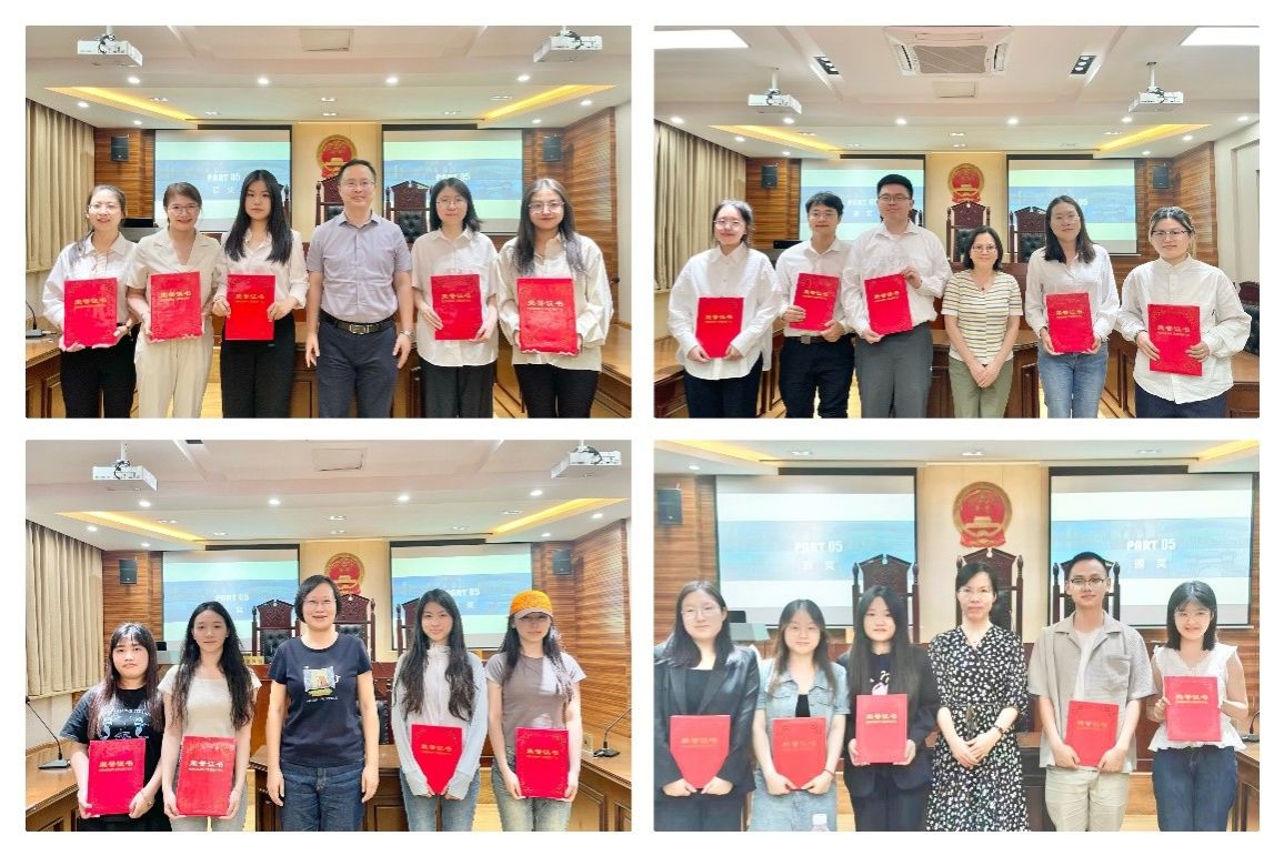 最激动人心的莫过于宣布成绩的时刻,陈迎新老师根据组委会计算出的各参赛队的平均分,宣布本次模拟法庭竞赛的冠军是15号苏醒团队(一等奖)、亚军是16号文鑫团队(二等奖)、季军是14号范婧雯团队(三等奖),13号龚文莉团队获得第四名(优胜奖)!邓君韬老师、陈迎新老师、杨珊老师和张荣荣老师分别为获得一等奖、二等奖、三等奖和优胜奖的同学颁奖。