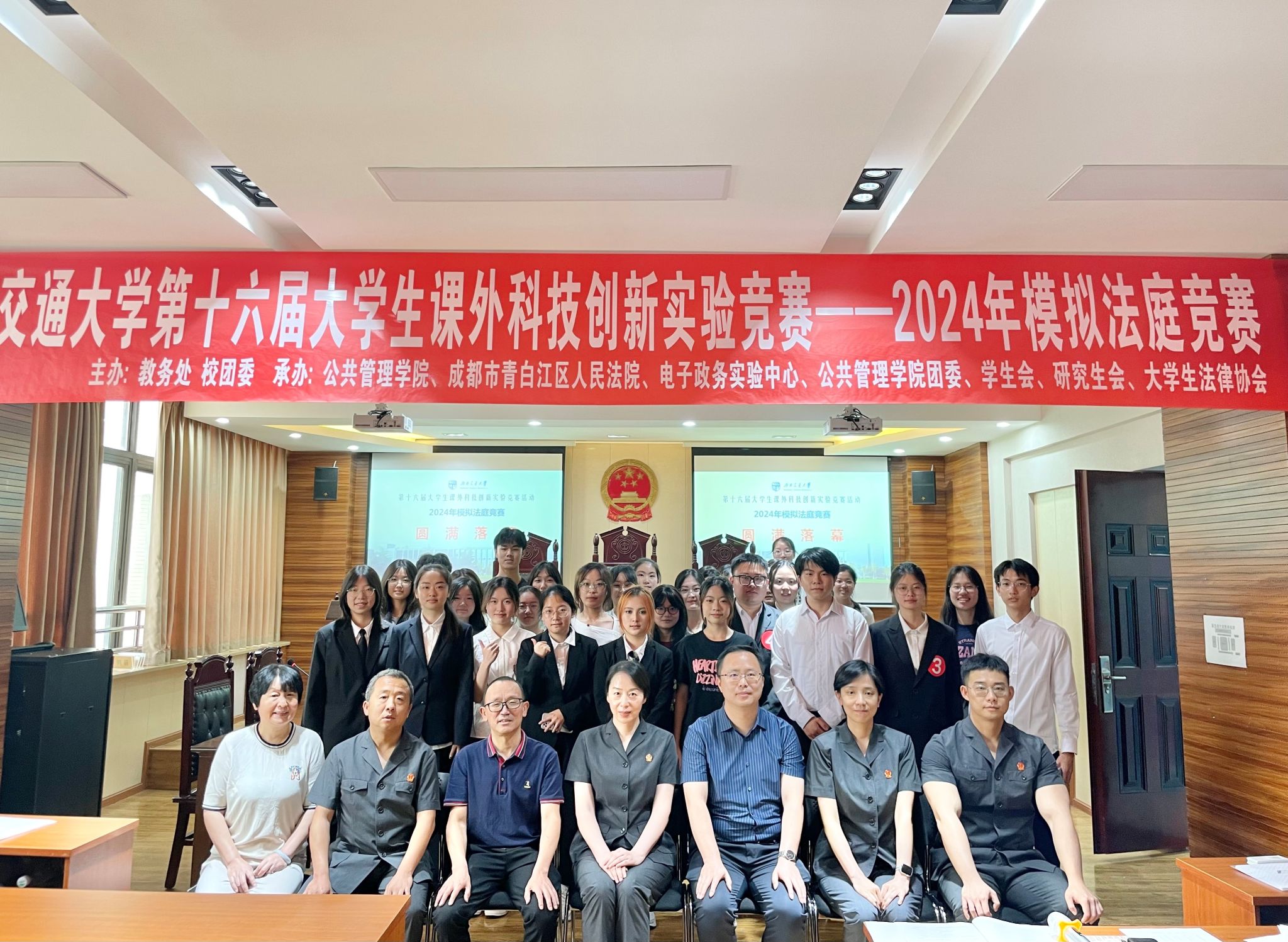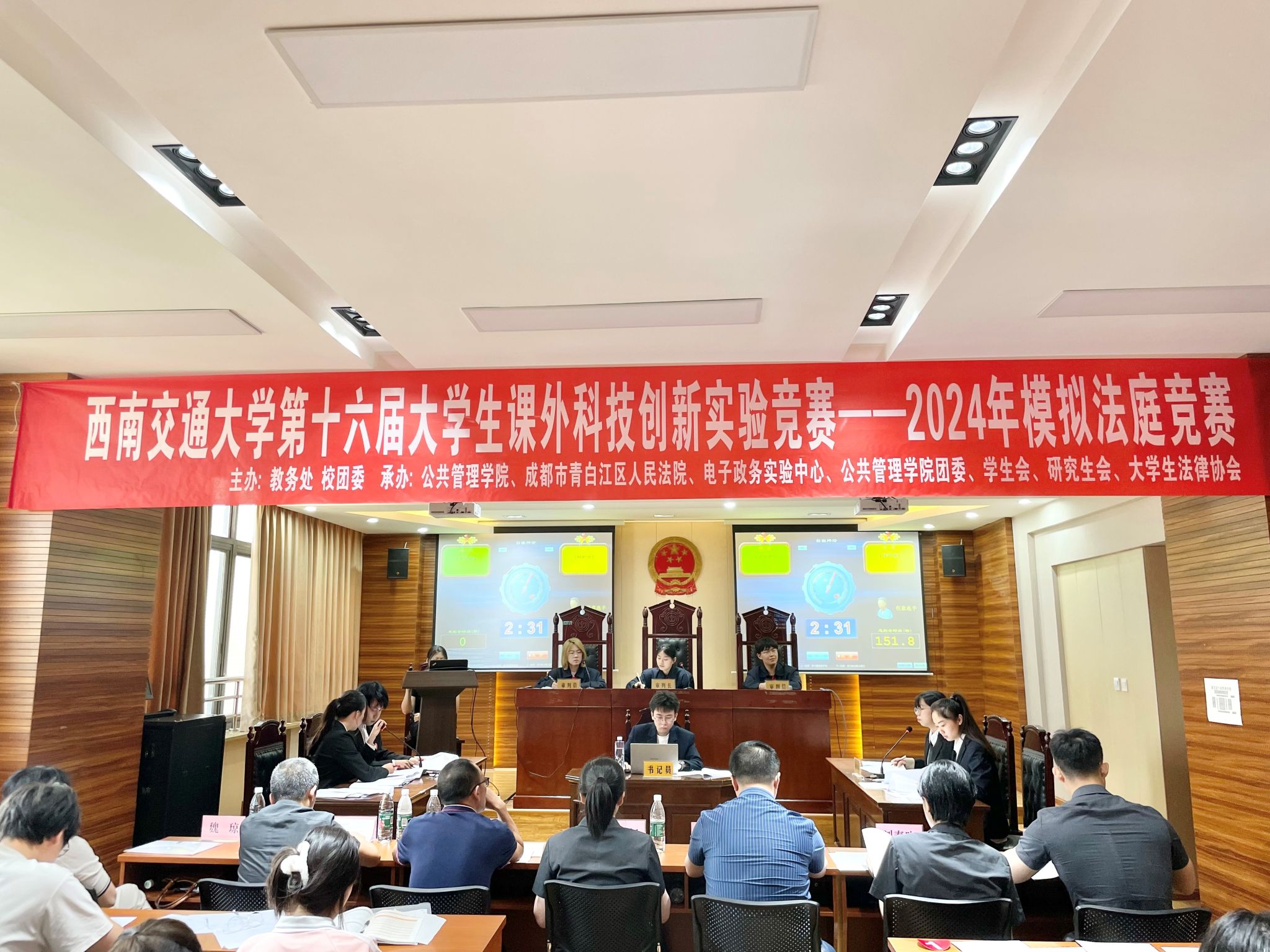 由尊龙亚洲官网教务处、校团委主办,尊龙亚洲官网、成都市青白江区人民法院、尊龙亚洲官网团委、员工会、老员工法律协会承办的尊龙亚洲官网第十六届老员工课外科技创新实验竞赛2024年模拟法庭竞赛在4月初拉开帷幕,经过初赛对16支参赛团队提交的司法文书进行匿名评审以及复赛对晋级的八支参赛团队言辞辩论评审,A、B两组分别有一支参赛团队晋级模拟法庭竞赛决赛,并于2024年5月26日下午14:00-17:00在信息楼01417模拟法庭实验室展开最后的激烈角逐。