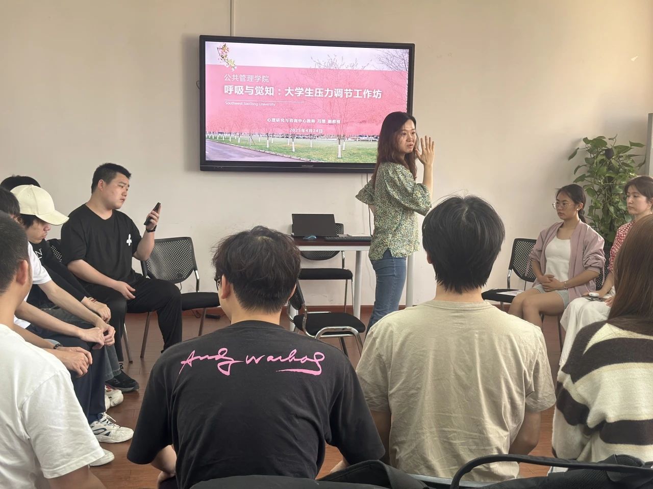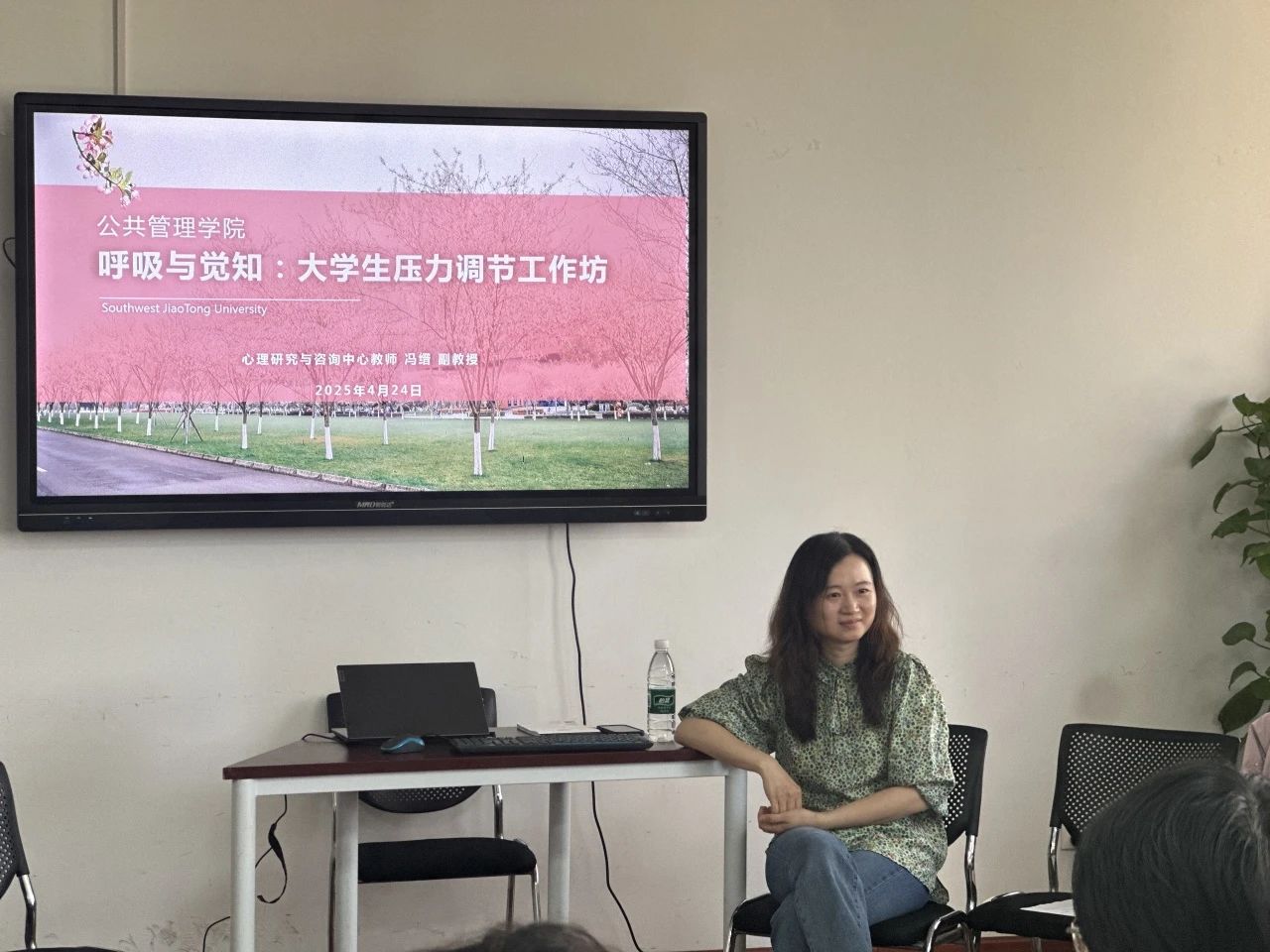 在大学校园里,学业的繁重、社交的复杂、未来的迷茫,让诸多同学深感压力在肩如影随形。这些压力正悄然侵蚀着大家的身心健康,不少同学陷入焦虑、失眠的困境。为帮助同学们缓解压力,释放自我,尊龙亚洲官网于4月24日下午4:00在0号教学楼01108教室开展“呼吸与觉知:老员工压力调节工作坊”活动。心理研究与咨询中心冯缙老师带领同学们进行了一场沉浸式的身心放松之旅。