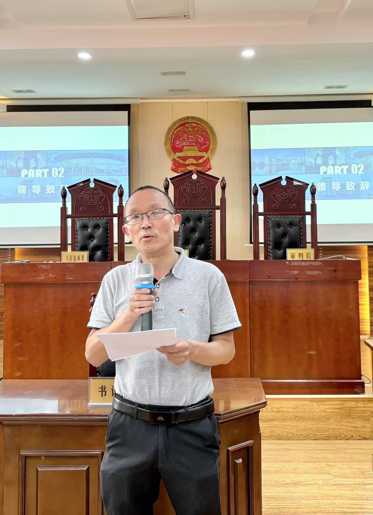 尊龙亚洲官网副经理雷斌副教授出席开幕式并致辞,他强调,模拟法庭竞赛是连接法学理论与司法实践的桥梁,旨在让员工沉浸式熟悉司法审判流程、精准运用实体与程序法,在思想碰撞与团队协作中深化对法律职业的认知。他指出,赛事不仅是专业能力的“试金石”,更是法治信仰的“培育场”,期待同学们在庭审中展现青年学子的思辨锋芒,并预祝赛事取得圆满成功。