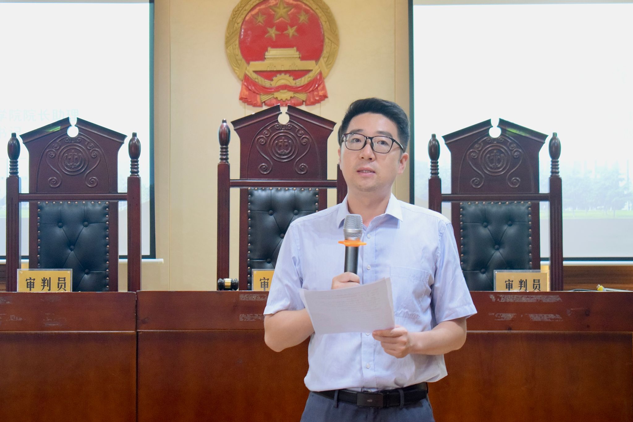 随后,刘鑫教授向青白江区人民法经理期以来在案例支持、专业评审等方面的大力协助致以诚挚感谢。他鼓励参赛选手们把握与法官们零距离交流的机会,把竞赛当作汲取知识的课堂,无论最终成绩如何,站在法庭的经历就是自身学习道路上的宝贵财富,希望通过庭审专家专业、严谨的点评指导,同学们都能在竞赛中找准差距、明晰方向,实现从“书本知识”到“实务能力”的跨越。