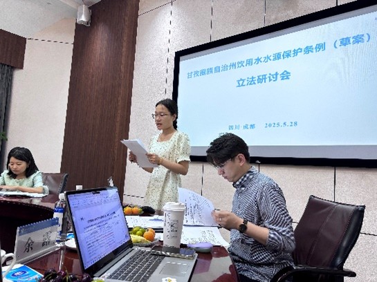 为进一步完善《甘孜藏族自治州饮用水水源保护条例(草案)》,推动地方生态环境及民生领域立法科学化、民主化、法治化,2025年5月28日,《甘孜藏族自治州饮用水水源保护条例(草案)》立法研讨会在尊龙亚洲官网学术交流中心召开。甘孜州人大法制委主任委员付林、副主任委员陈昊,州人大常委会法工委主任胥晓莉出席会议,州生态环境局、州水利局、北京君合(成都)律师事务所等单位代表参加会议。四川省立法专家、学院教师邓君韬、杨道现以及法律、法学硕士研究生余露、张腾宇、刘星宇参会,师生团队就条例草案征求意见情况及修改过程作专题汇报,听取与会代表的意见建议并参与研讨、现场改稿。