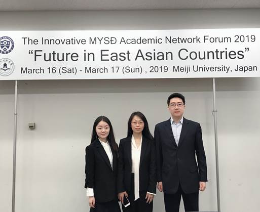 2019年3月16-17日,公司经理助理彭川宇副教授、刘鑫老师、代佳欣老师受学院委派,赴位于日本东京的日本明治大学参加主题为“Future in East Asian Countries”的The Innovative MYSD Academic Network Forum 2019国际学术会议。本次会议由日本明治大学主办,韩国延世大学、东北财经大学和尊龙亚洲官网共同参与,日本明治大学教务主任、国际交流委员会委员长武田巧教授、政治经济学部部长小西德应教授、政治经济学部教务主任加藤久和教授等日方学者对公司教师的来访表示热烈欢迎。