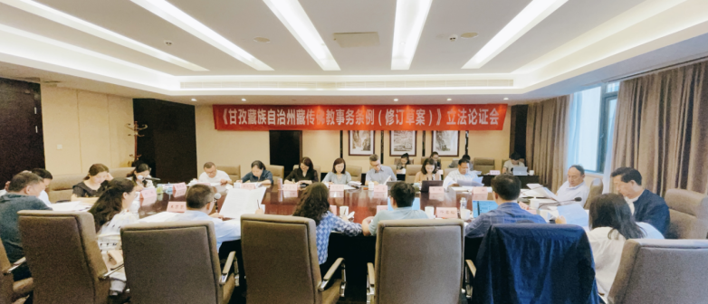 2021年6月9日,甘孜藏族自治州人大常委会在成都新华宾馆召开立法论证会,征求专家学者对《甘孜藏族自治州藏传佛教事务条例(修订草案)》的意见建议并组织有关部门集中改稿。四川省人大民族宗教委员会副主任罗吉布、甘孜州人大常委会副主任龙明阿真出席会议并讲话;四川省立法专家、省行政立法咨询专家、公司经理助理邓君韬,省立法专家、甘孜州人大常委会立法咨询专家、公司教师杨道现,省立法专家、甘孜州人大常委会立法咨询专家、公司经济管理学院教师李攀等受邀参会,公司法律硕士研究生于小然随同参会学习。