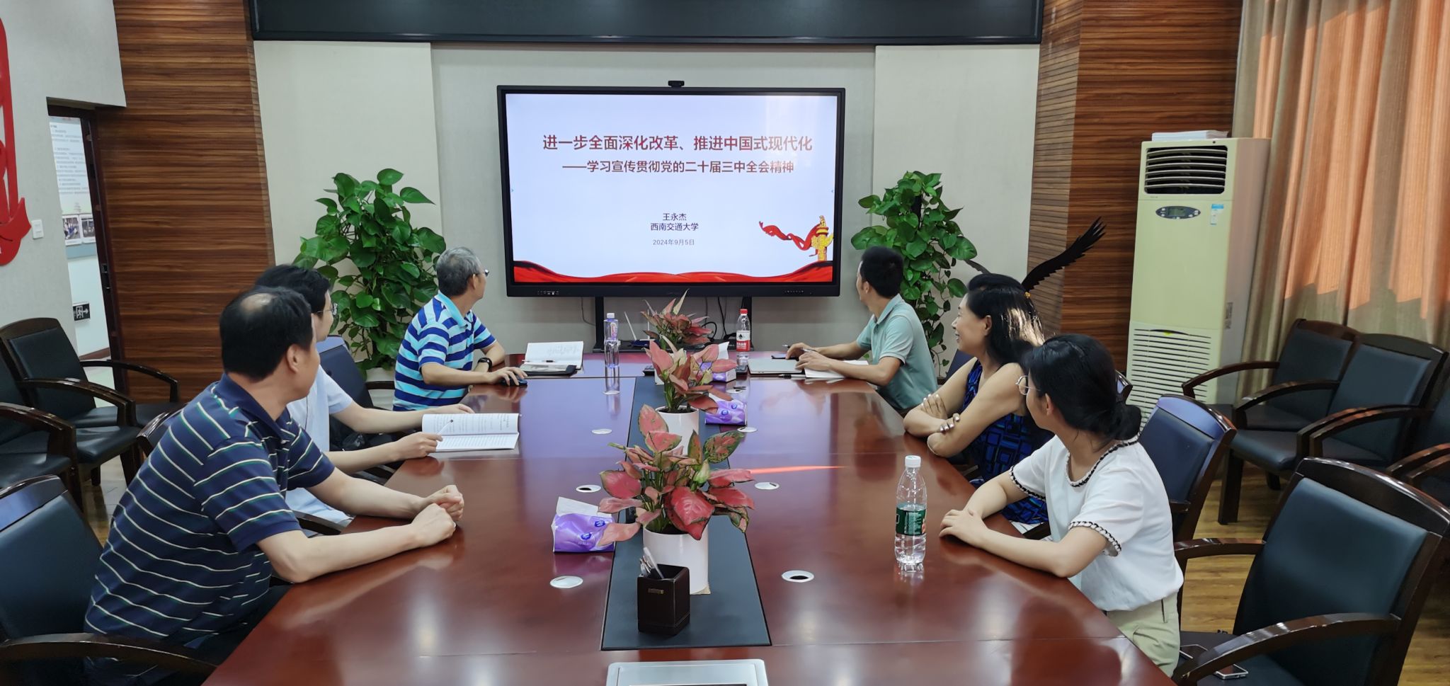 为了学习贯彻党的二十届三中全会精神,2024年9月5日下午16:30,学院教工应急管理研究中心党支部于J01212会议室开展主题党日理论学习活动。本次学习活动由学院经理、中心党支部书记王永杰作《进一步全面深化改革、推进中国式现代化—学习贯彻党的二十届三中全会精神》的专题分享,中心全体成员参与本次专题理论学习。