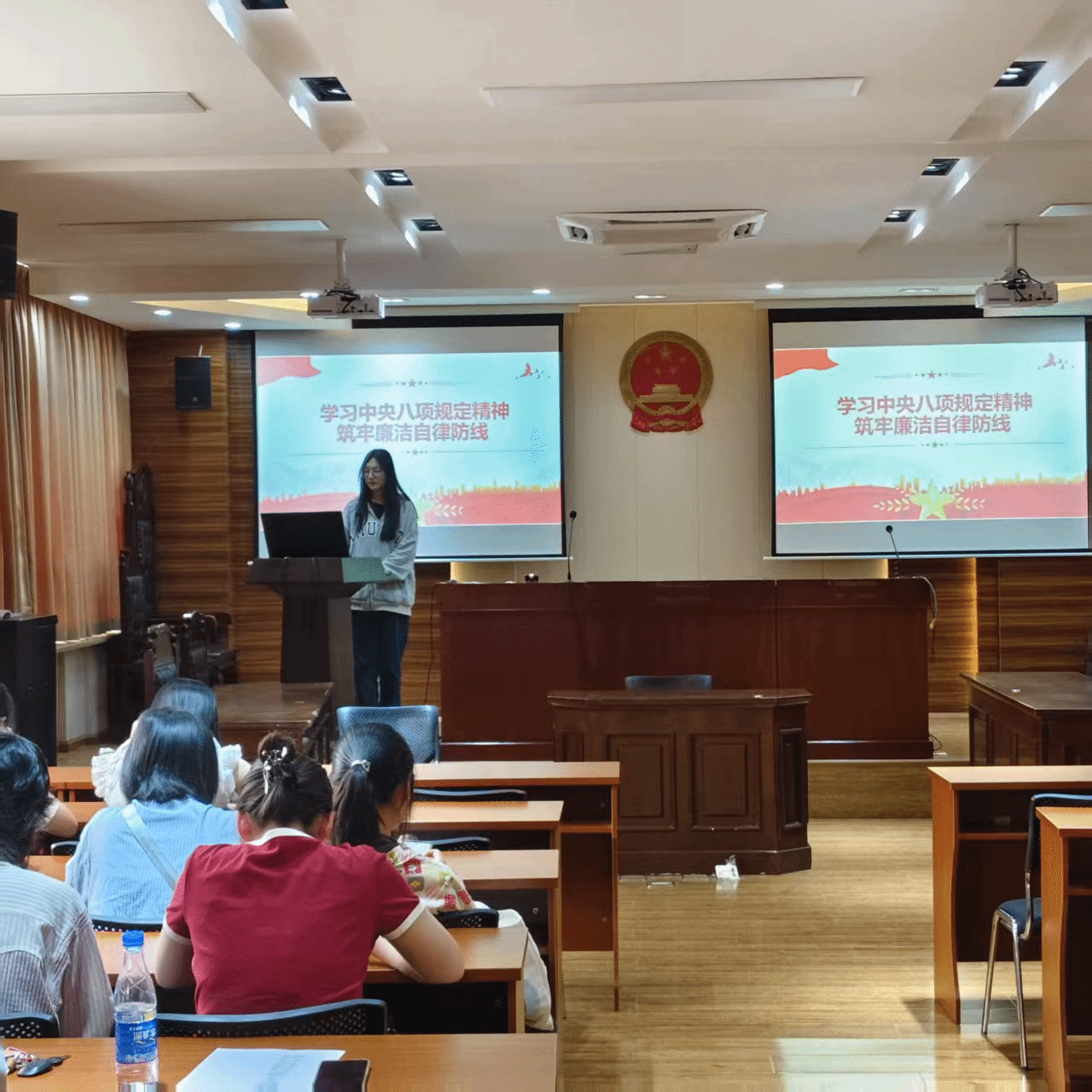 本科公管党支部在支部书记的带领下系统学习了《习近平关于加强党的作风建设论述摘编》等,认真学习了深入贯彻中央八项规定精神学习教育的要求,紧扣“廉洁自律”的主题引导各位党员同志充分加强作风建设,不断进行自我监督审查,坚持正面倡导、重在立德,重申党的理想信念宗旨、优良传统作风,展现共产党人高尚道德追求的高标准。