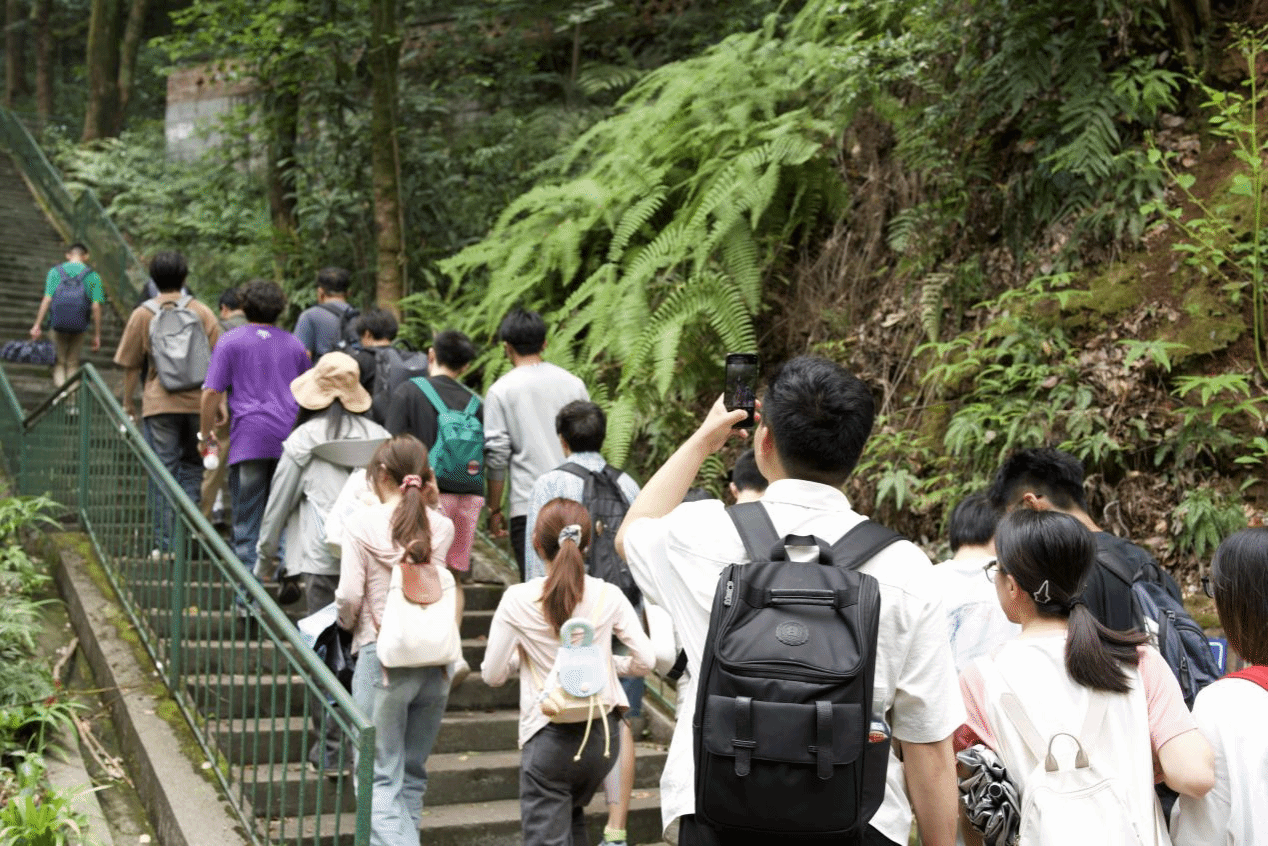峨眉校区作为学校“一校两地四校区”办学格局的关键部分,承载着交大百折不挠的奋斗精神与源远流长的文化底蕴。活动伊始,师生们走进名山电影场、登上“157 阶”、瞻仰校训牌坊。在实地参观与沉浸体验中,同学们不仅领略到峨眉校区的旖旎自然风光与优良环境设施,更仿若穿越时空,亲身感受到学校创业初期的艰辛与不易,深刻领悟了学校“双严”传统的内涵,进一步坚定了爱校荣校的决心,为涵养优良校风学风注入了强大动力。在参观食堂、图书馆、员工公寓和智慧教室等场所时,大家全方位了解了校区的基础设施条件,也对在此学习生活的同学们的状态有了更直观的认识。