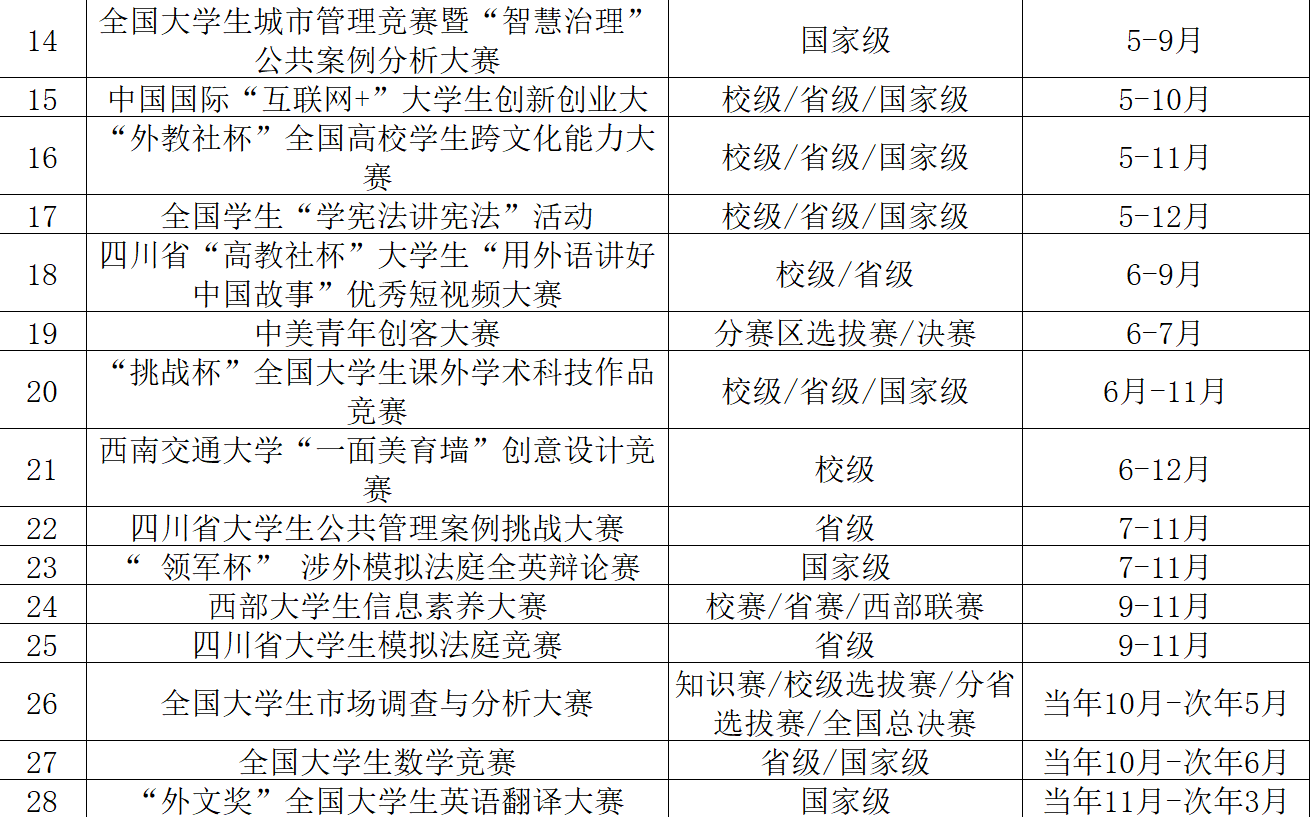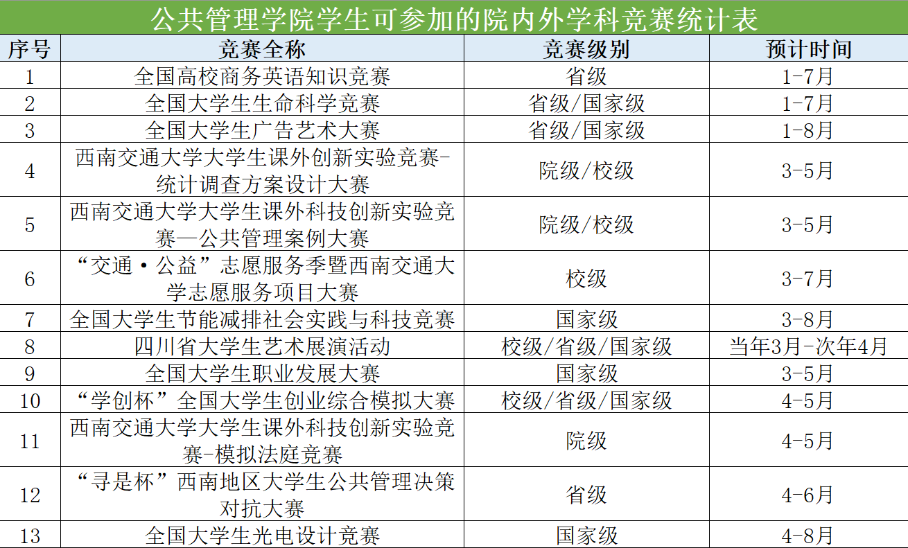 为进一步提升公司员工创新精神,增强创新创业能力和创新活力,促进老员工全面发展,根据学院历年主办承办和学院学子参与获奖的学科竞赛情况,现将公司学子全年可以参加的学科竞赛清单整理发布如下,供学院广大学子参考备赛。