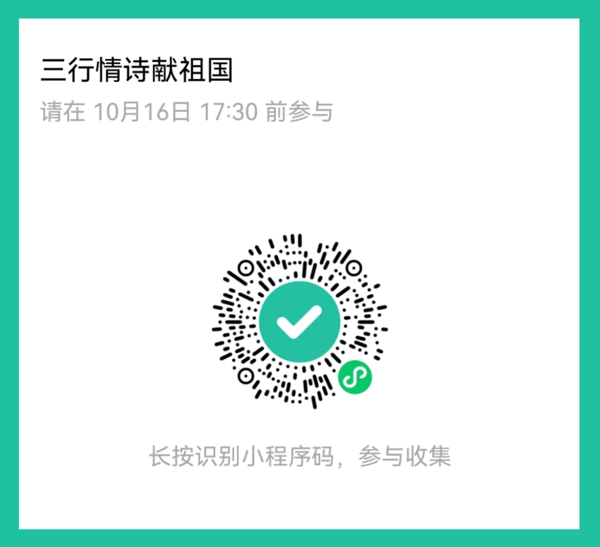 参与者可以围绕祖国的山河壮丽、历史文化、科技创新、人民幸福等方面创作三行情诗,保证作品原创,价值观积极正向,符合社会主流道德观念。字数50字以内,三行排版。最终提交的活动作品中如包含与主题、情诗契合的图片可提升作品中奖率哦!