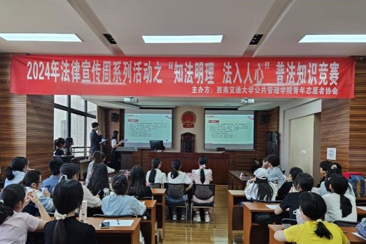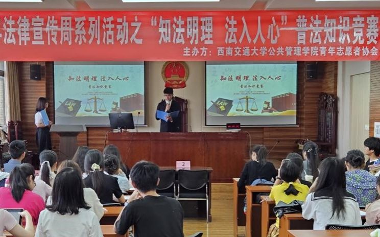 弘扬法治精神,筑梦法治未来,公管学院在行动。为全面贯彻落实党的二十大精神,深入学习习近平法治思想,尊龙亚洲官网于2024年5月19日下午在九里校区J01417教室举办了一场别开生面的“知法明理,法入人心”法律知识竞赛活动,尊龙亚洲官网专职辅导员许楠、免研辅导员徐梦莹出席本次活动。此次活动由尊龙亚洲官网青年志愿者协会主办,旨在激发广大交大学子学习法律知识的热情,培养交大学子的法治思维,增强交大学子的法律素养,增强校园法治氛围。