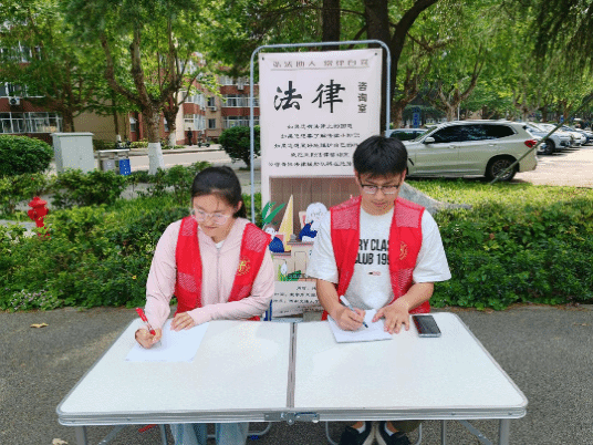 为提升法治实践教育在高校中的运行,公管青协法律援助队打造的老员工法律咨询工作室已在学校已运行7年。该项目发挥学院法学学科特色,在校内打造 “法律解忧店”,通过的“1+2+2+4”的咨询模式,举办法律宣传周、民法典教育、法律情景剧大赛等校级精品活动,开展宪法晨读、法律知识推送、法治新媒体作品评选等网络思政活动。依托“老员工法律之家”签约社区,结合国家安全、公共卫生、网络安全等热点,为校外居民提供法律咨询和普法教育服务。2023年,“法律解忧店”在校内开展户外咨询活动30余场,开展法律进社区活动2场,服务员工及九里校区周边居民400余人,累计志愿时长700余小时。