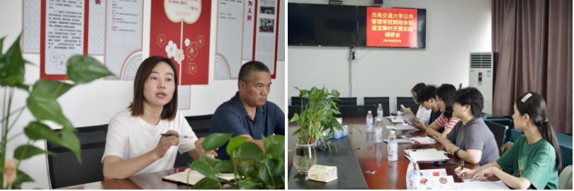 此外,8月12日下午团队成员还参观了大树村(改名为花盆村)支部委员会,党总支书记、主任刘兆荣向实践团队介绍道:花盆村作为有省级四好村、先进基层党组织等多项荣誉称号的少数民族村,一直跟随党的方针政策,不断提高政治觉悟,抓牢乡村建设和发展。同时花盆村支部委员会组织召开花盆村土地治理专题座谈会,会议上党总支委员、副主任杜国宣表示:农村土地治理问题是关系农民生活水平的重大问题,本村在治理过程中虽然取得了较可观的成果,但也面临着不小的挑战。不过在党的引领下有信心攻克当地土地治理难题。漆树土家族乡党委委员、人大主席、花盆村驻村干部陈有道,党总支书记、主任刘兆荣、党总支委员、副主任杜国宣等共同出席本次会议。