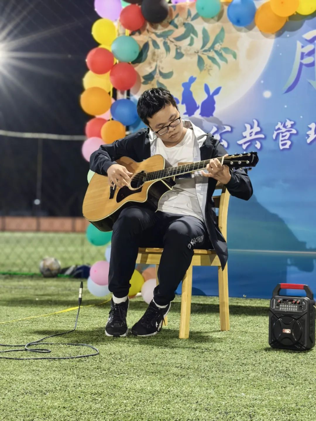 月圆之际,中秋之时。在校的外国友人与周围的居民也被这种欢乐的氛围带动,积极地融入进音乐会的氛围当中。来自孟加拉国的职工用吉他弹奏了《海阔天空》和《成都》,一字一句,音符跃动之间,映射出他对中文与中华文化的热爱,展现着交大走向国际化的视野,让音乐跨越国界,使情谊不分民族。