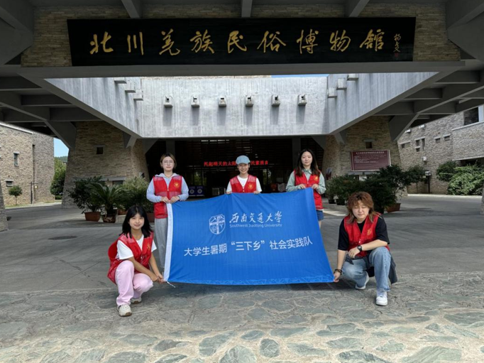 团队成员们来到北川羌族民俗博物馆,被博物馆丰富的展品和生动的历史陈列深深吸引。在这里,实践队员们了解了羌族文化的独特之处。除此之外,队员们还在馆内担任引导员,主动提供讲解服务。