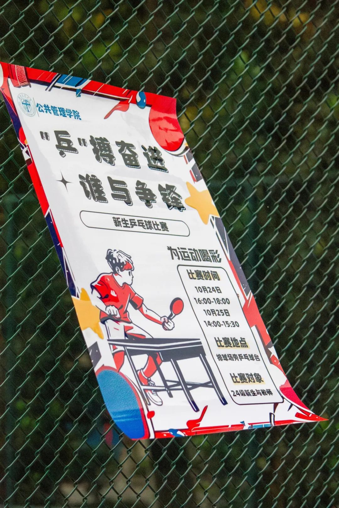 10月25日的新生乒乓球赛以男子单打和女子单打的形式展开。随着裁判一声哨响,比赛正式开始。发球方双脚稳稳站定,身体略微前倾,手腕一抖,球以极快的速度飞向空中,紧接着迅速下坠,接球方反应迅速,瞄准角度稳稳挥拍。双方你来我往,频频打出高质量回球。赛场高潮迭起,比分紧追不舍,小组赛在紧张而兴奋的气氛中进行了一轮又一轮。