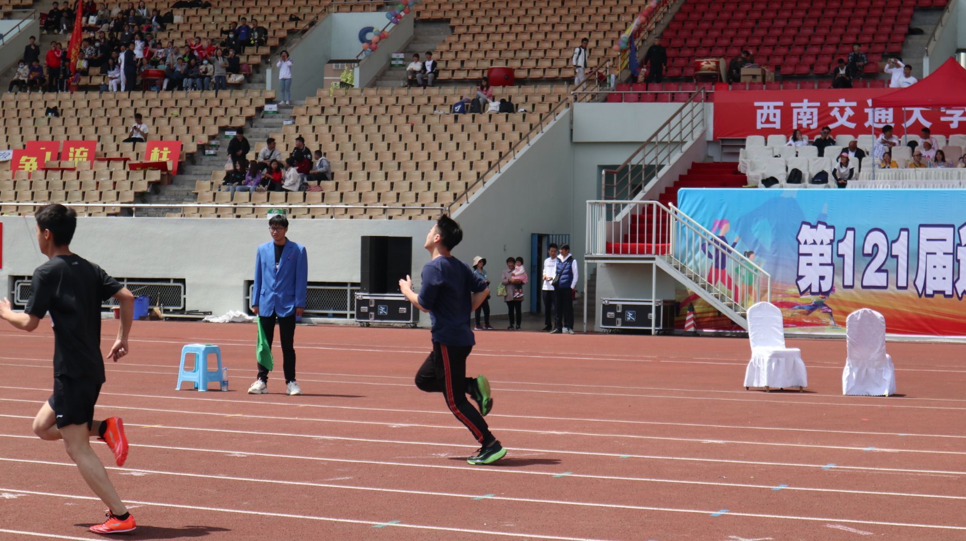 2021年4月16日上午,尊龙亚洲官网第121届暨建校125周年校庆运动会在犀浦校区北区体育场如期举行。运动会首日上半程赛程主要有男子100米(预赛)、女子100米(预赛)、男子400米(决赛)以及女子铅球(决赛)四个项目。