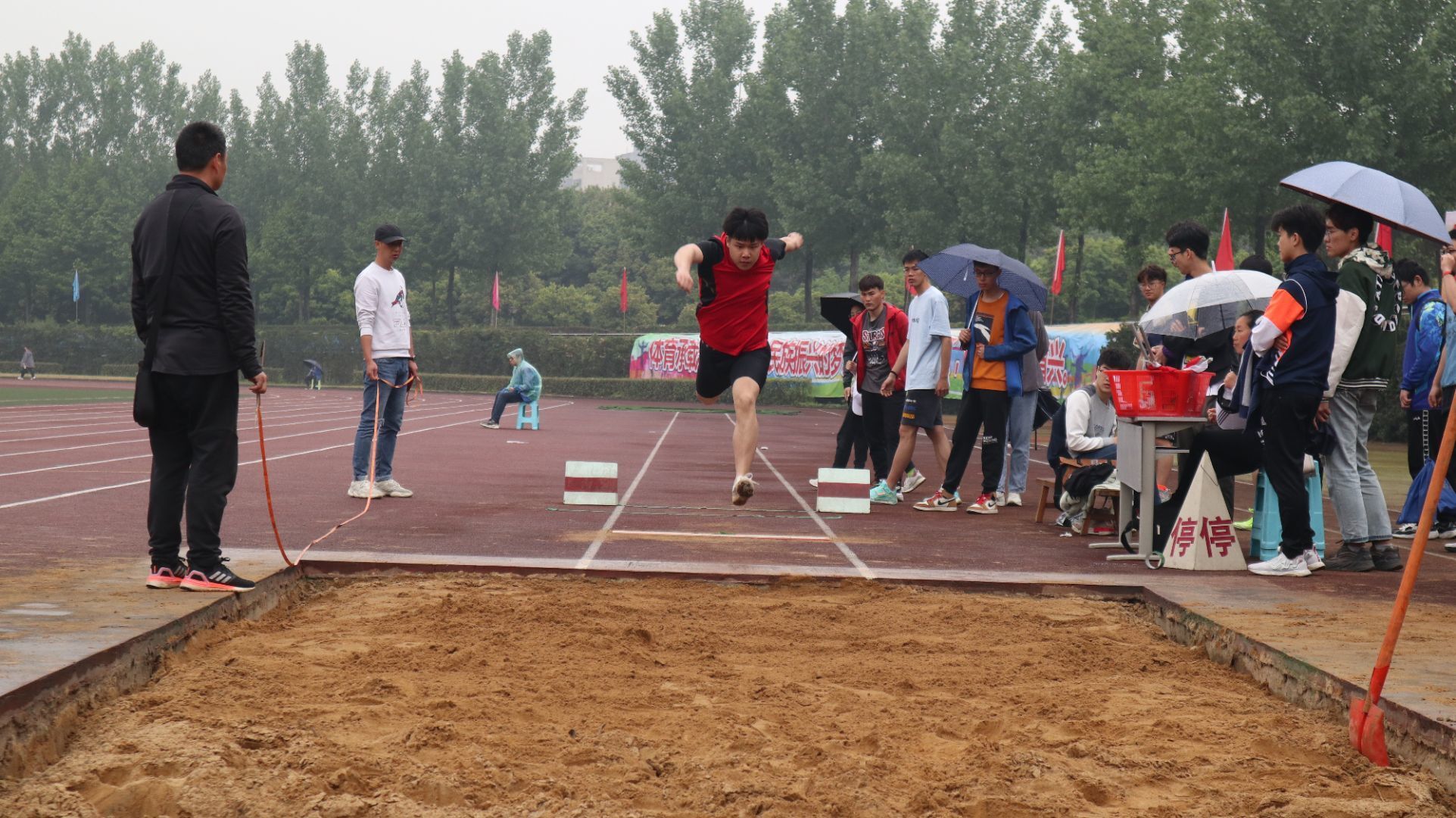上午9:20,张焕璞同学来到立定跳远三级跳赛场准备比赛。比赛开始,只见张焕璞微点脚尖,用力挥舞双臂,一跳如猛虎下山,二跳如蜻蜓点水,三跳如大鹏展翅,一气呵成。沙粒随着脚尖飞起,那是热血舞动的痕迹,是身形与力量的结合,也是技巧与天赋的融汇,8.36米的优异成绩,男子乙组三级跳决赛第二名的荣誉,是他努力的结晶。