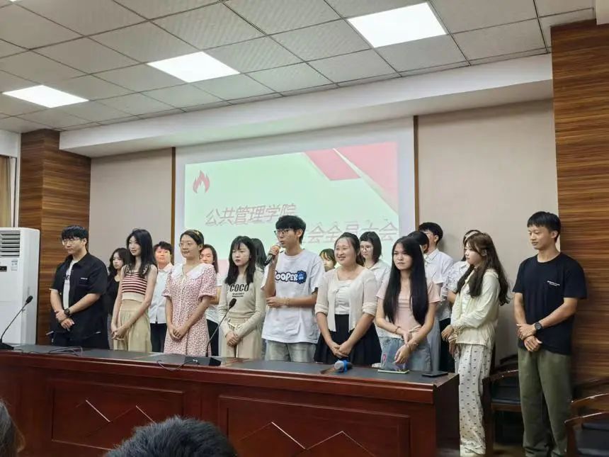 全员大会在主席团成员黎烨炜的深情致辞中拉开序幕,他围绕员工会的宗旨与愿景,为全体成员描绘了充实精彩的老员工活图景,同时讲述了员工会连续多届取得的校级“十佳”员工会等骄人成绩。随后,主席团成员刘佳昕用三个温馨的故事展现了员工会成员间深厚的情谊与务实的工作态度,让新成员们深切感受到员工会大家庭的温暖与力量。主席团成员胡书奕与闫佳琪则分别就各自负责部门与工作作出详细的工作安排,并期望各位同学在未来的学习学业和员工工作中能够形成过硬的专业本领,提升个人综合能力。