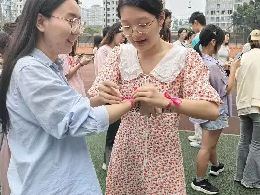 全员大会后,激动人心的素质拓展环节正式开始,全体成员通过抽签分为五队,每队以创意之名——“芭比梦想队”“你说的都队”等,展现了团队的独特风采。手腕上的彩带,不仅成为了队伍的标志,更为活动现场添上了一抹亮色,在大家的欢笑声中游戏开始。