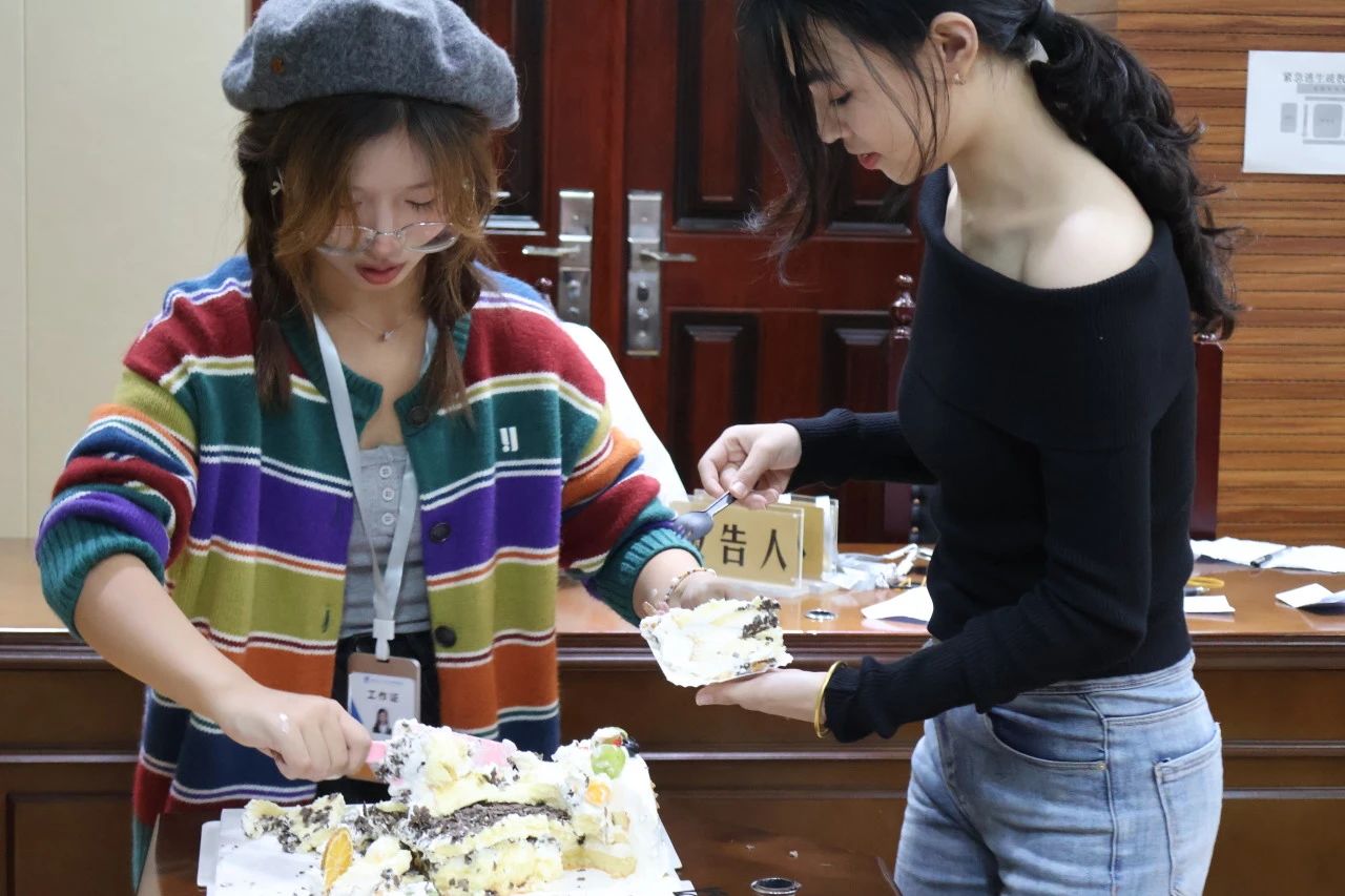 精致美味的蛋糕被分发到每一个成员的手中,整个教室弥漫着香甜的气息,正如一系列活动后成员们饱胀到外溢的雀跃心情。