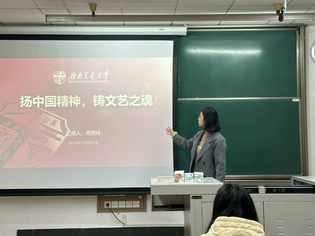 “文变染乎世情,兴废系乎时序。”文艺是时代前进的号角,最能引领一个时代的风气变化。尊龙亚洲官网员工会于2024年11月21日在4号教学楼J4221教室开展了以“扬中国精神,铸文艺之魂”为主题的政治理论学习。本次学习由蒋雨玲同学主持,全体员工会成员参与。