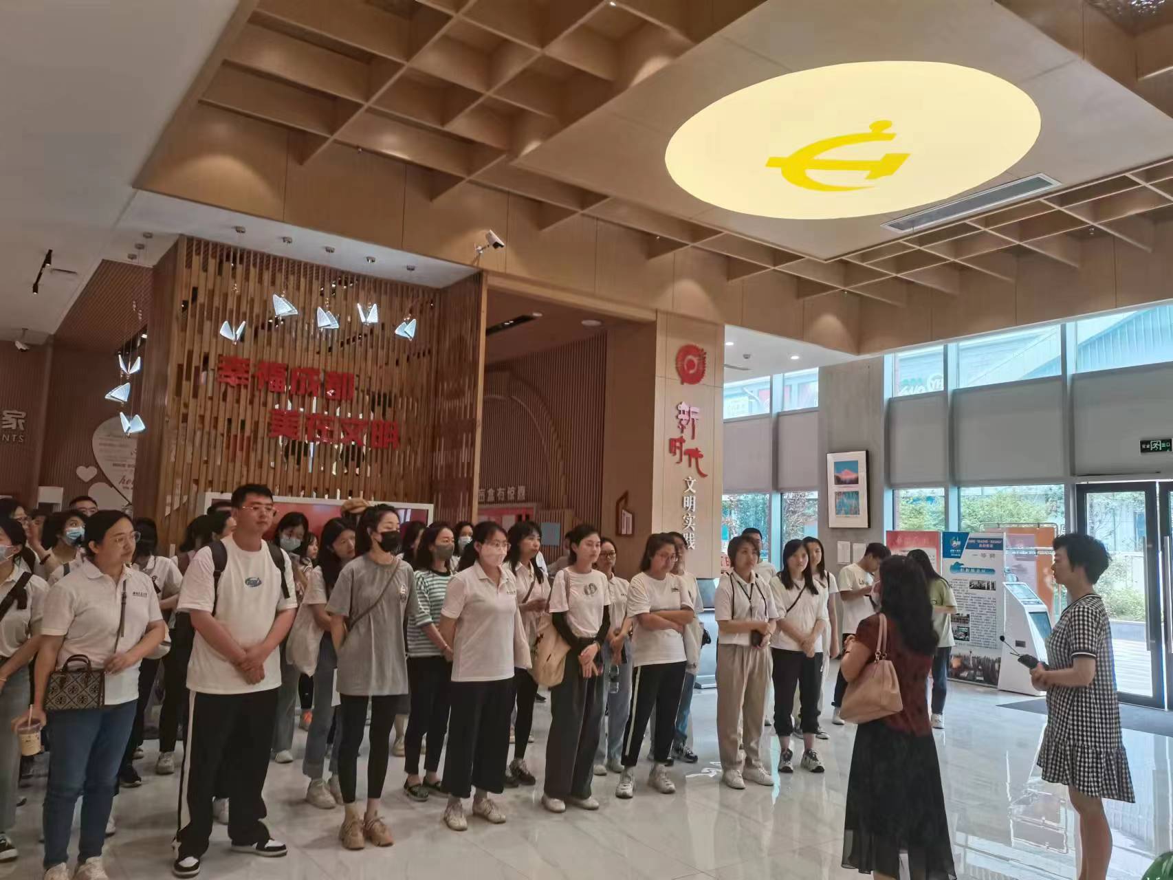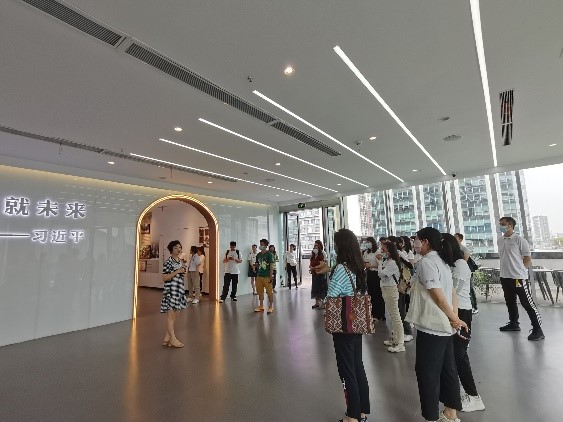 然后,陈岚书记带我们参观了党群服务中心三楼,这里打造了东郊华章主题展馆,包括“鎏金岁月”“时代华章”“放眼未来”三个板块,全景式呈现东郊工业波澜壮阔的发展历程,通过历史的记录,让社区居民能牢记历史,不忘初心,奋勇向前。