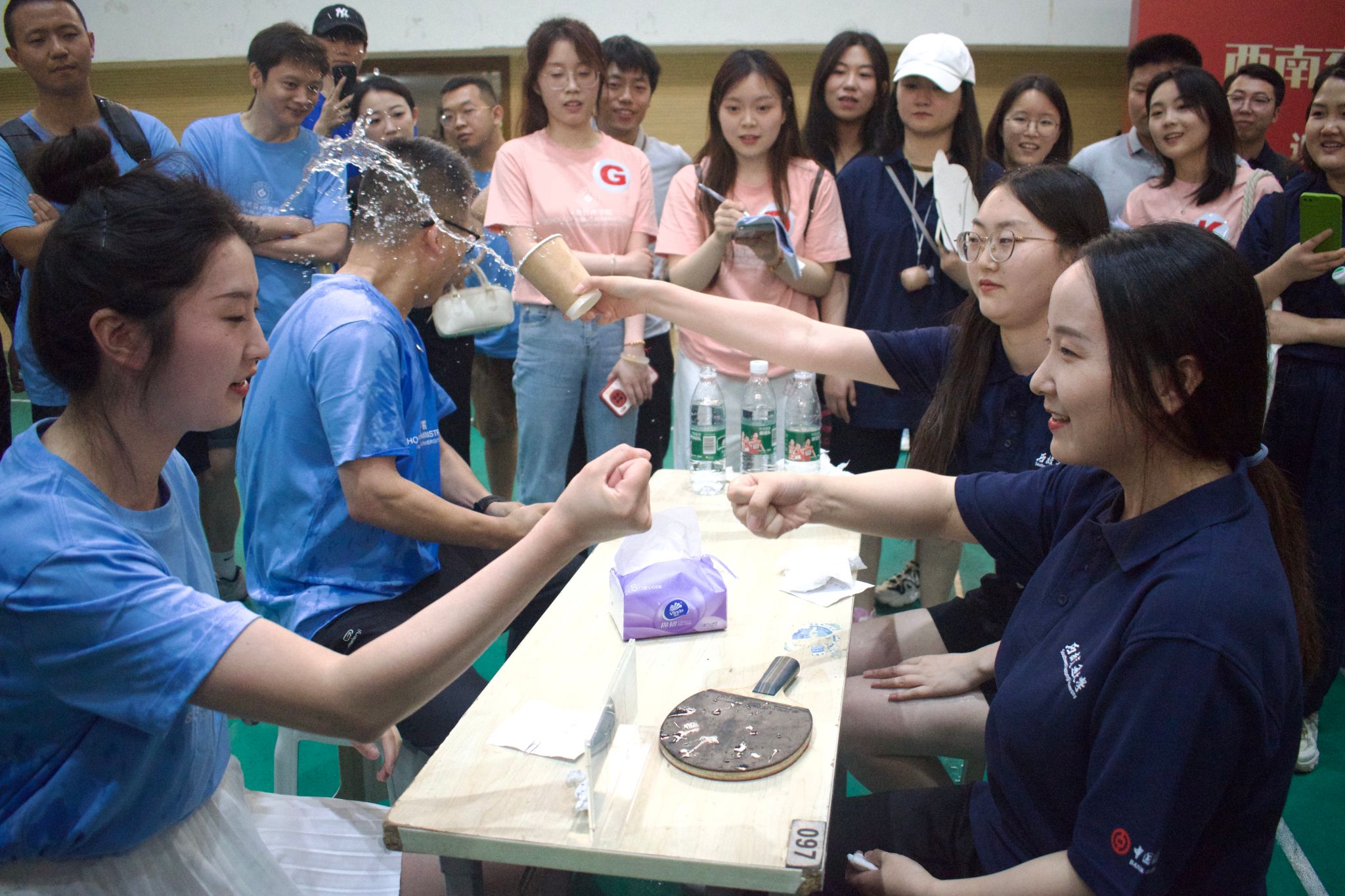 校庆主题日活动依次在排球场、足球场、詹天佑体育馆三个场地举行,2023级MPA员工组建的四支队伍(滴水Blow队、齐乐龙龙队、龙行大运队、梦想启航队)及员工代表队、教工代表队共六支队伍在各赛场上奋力拼搏。在排球场上开展的“趣味三大炮”活动,点燃各队伍热情,他们努力练习,竭尽所能,争取为本队伍拿到更高积分。