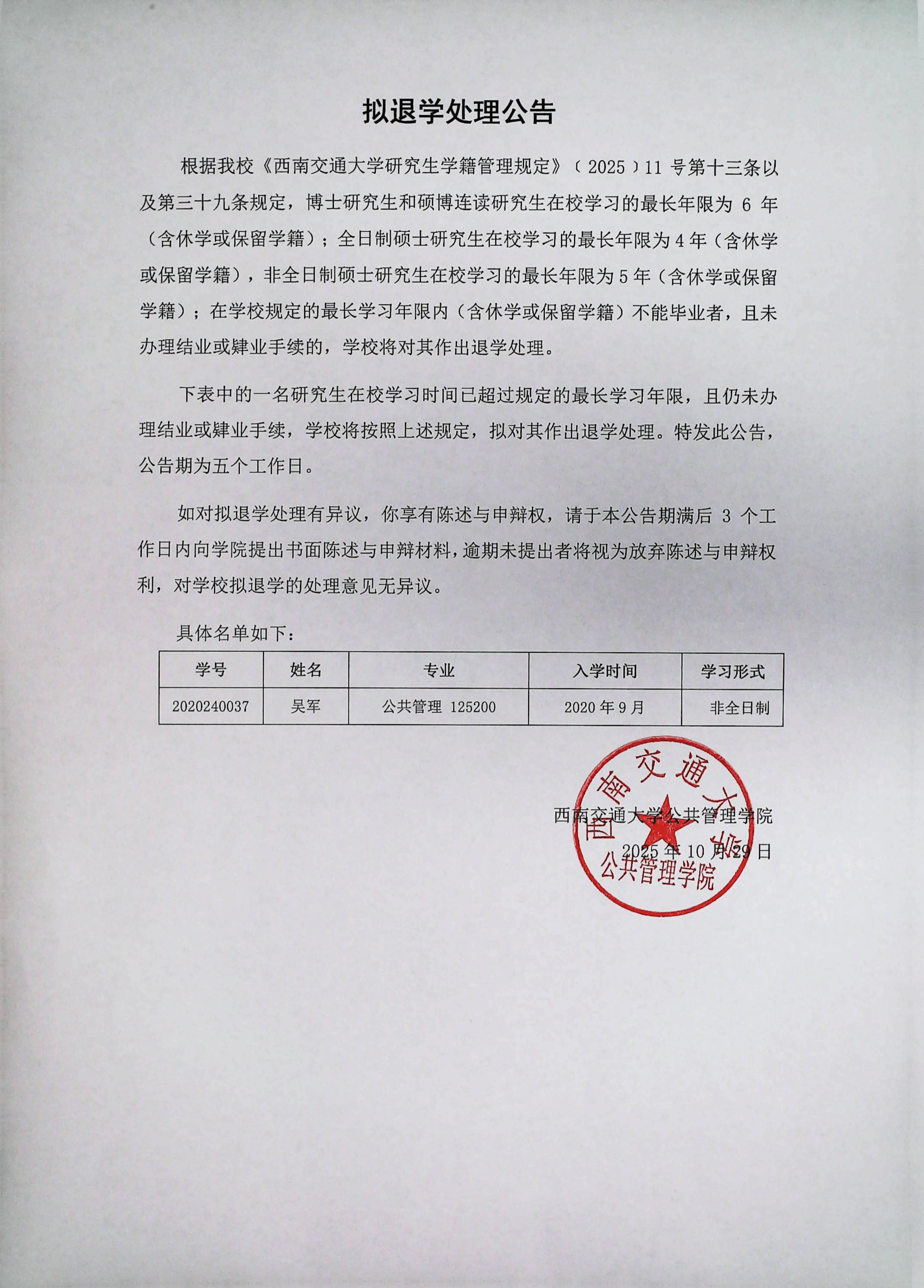 拟退学处理公告
