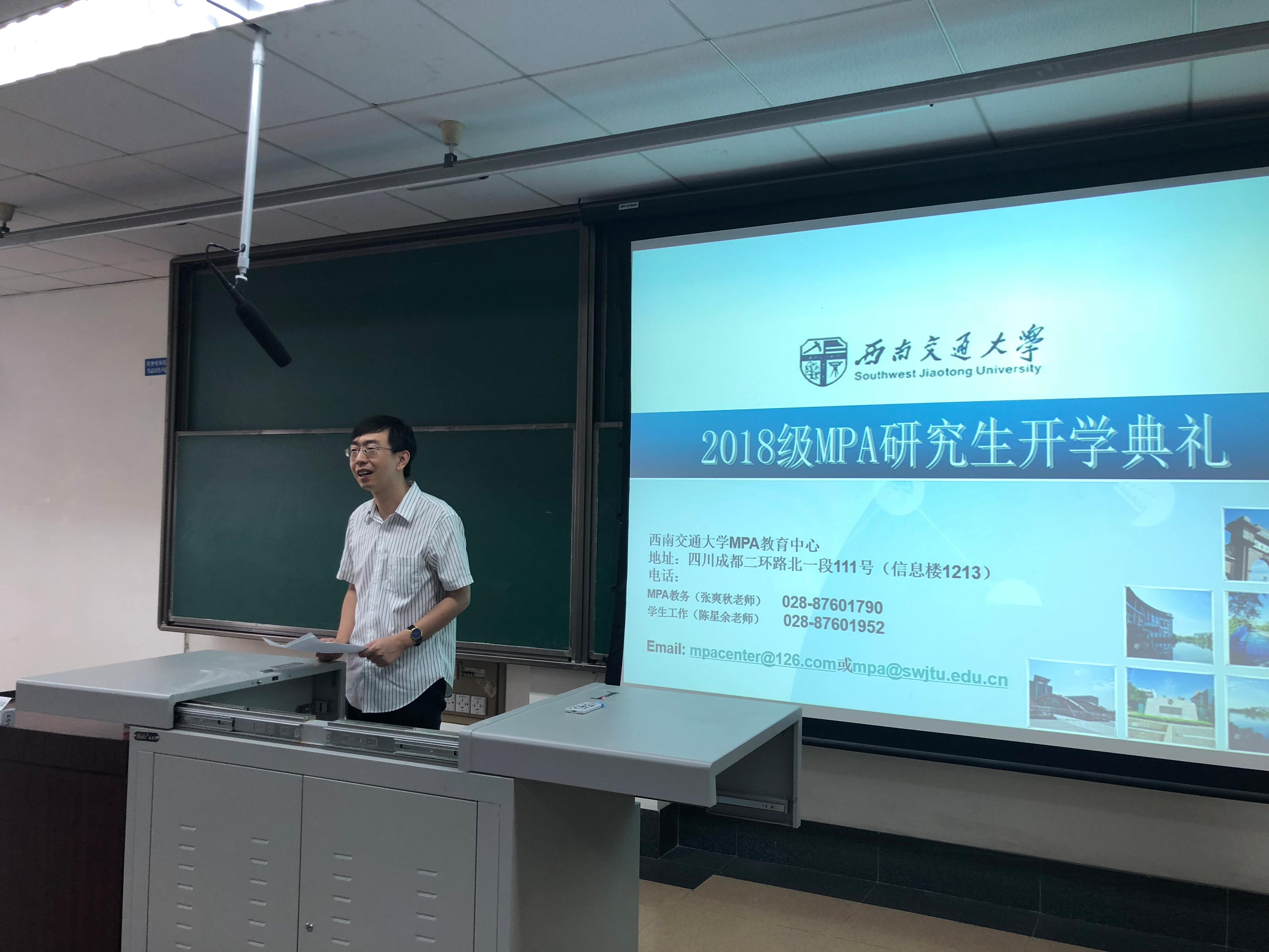 2018年9月8日,公司公共管理专业(MPA)2018级新生开学典礼在逸夫楼4318教室隆重举行。参加开学典礼的领导有:四川省人力资源和社会保障厅赖荣副厅长,公共管理与政法学院经理王永杰教授,公共管理与政法学院副经理、MPA中心常务副主任李华强老师等。